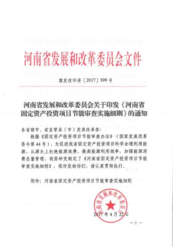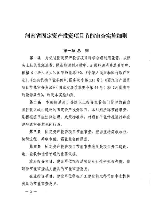 河南省固定資產(chǎn)投資項目節(jié)能審查實施細則